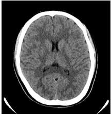 Unenhanced Computed Tomography (CT) of the brain was performed, which was normal, with no acute cortical infarction or intracranial hemorrhage (Figure 1). The patient was admitted for further evaluation.